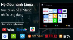 • Giao diện tiếng Việt dễ sử dụng với nhiều ứng dụng giải trí như: Netflix, Youtube, Fim+, Nhaccuatui, Zing TV, FPT Play, Clip TV, Zing MP3, trình duyệt web