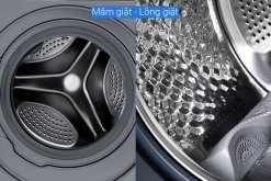 Ngoài ra, bảng điều khiển có dạng nút xoay mạ gương sáng bóng lẫn phím cảm ứng được trang bị song ngữ Anh – Việt và màn hình hiển thị rõ ràng, giúp thao tác các chức năng máy giặt nhanh chóng, dễ dàng hơn.